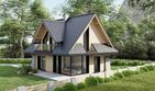 Graficzne opracowanie rzutów poglądowych widocznych na karcie projektu zostało wykonane przez Extradom.pl. Prezentowane przez Extradom.pl wizualizacje wykonane zostały przez autora projektu i należy poczytywać je jedynie za przykład i propozycję wykończenia, wizję architektoniczną autora projektu. Ostateczne wykończenie budynku może nastąpić na wiele sposobów. Szczegółowe rozwiązania zastosowane w oferowanej dokumentacji - w tym również ilość, lokalizacje i wygląd okien, drzwi, kominów - mogą w niewielkim stopniu różnić się od prezentowanej wizualizacji budynku.