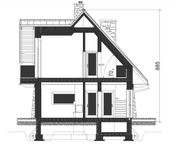 ściany: bloczek z betonu komórkowego H+H 24 cm, wełna mineralna 20 cm, tynk lub szalunek drewniany; strop: płyta żelbetowa; ścianka kolankowa: 70 cm; dach: dwuspadowy, nachylenie 45 st. 48 st , więźba drewniana, blacha na rąbek stojący; ogrzewanie podłogowe: zastosowano we wszystkich pomieszczeniach mieszkalnych; wentylacja: grawitacyjna; schody wewnętrzne : żelbetowe;