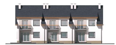 Graficzne opracowanie rzutów poglądowych widocznych na karcie projektu zostało wykonane przez Extradom.pl. Prezentowane przez Extradom.pl wizualizacje wykonane zostały przez autora projektu i należy poczytywać je jedynie za przykład i propozycję wykończenia, wizję architektoniczną autora projektu. Ostateczne wykończenie budynku może nastąpić na wiele sposobów. Szczegółowe rozwiązania zastosowane w oferowanej dokumentacji - w tym również ilość, lokalizacje i wygląd okien, drzwi, kominów - mogą w niewielkim stopniu różnić się od prezentowanej wizualizacji budynku.