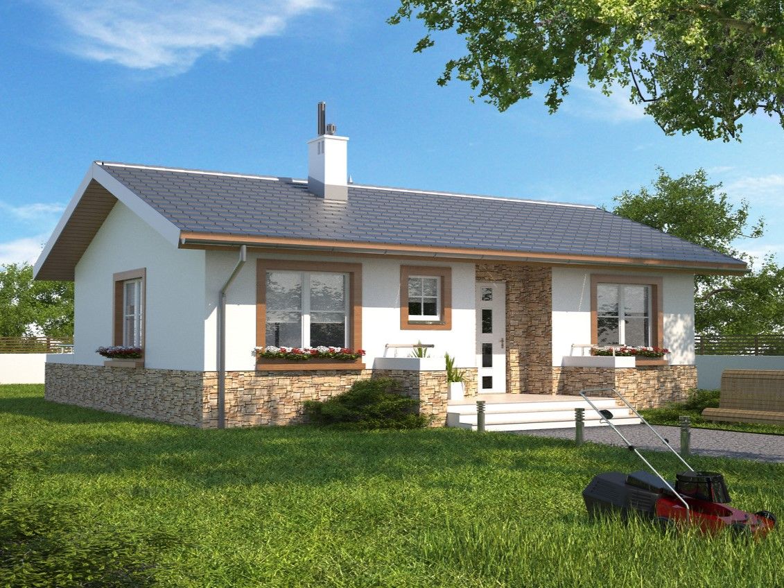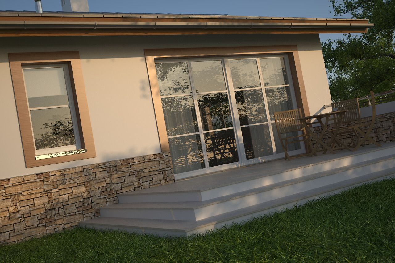 Graficzne opracowanie rzutów poglądowych widocznych na karcie projektu zostało wykonane przez Extradom.pl. Prezentowane przez Extradom.pl wizualizacje wykonane zostały przez autora projektu i należy poczytywać je jedynie za przykład i propozycję wykończenia, wizję architektoniczną autora projektu. Ostateczne wykończenie budynku może nastąpić na wiele sposobów. Szczegółowe rozwiązania zastosowane w oferowanej dokumentacji - w tym również ilość, lokalizacje i wygląd okien, drzwi, kominów - mogą w niewielkim stopniu różnić się od prezentowanej wizualizacji budynku.