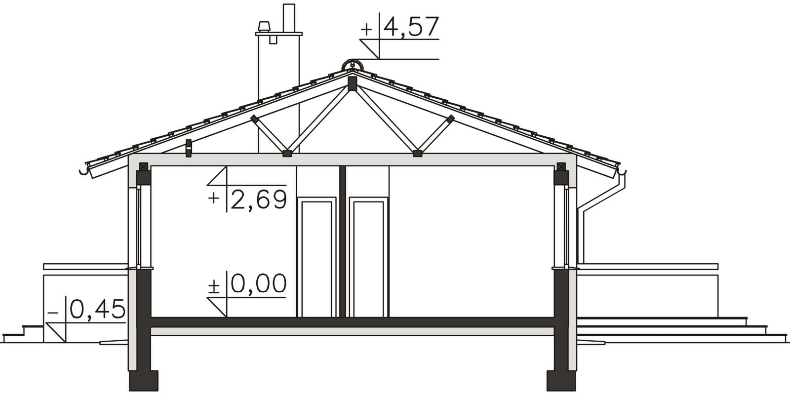 Fundamenty - rozwiązanie o podwyższonej izolacji termicznej. Ściany zewnętrzne - Pustak ceramiczny 25 cm + styropian 15 cm. Strop - drewniany. Dach - wiązary prefabrykowane. Ogrzewanie - c.o. grzejnikowe + c.w.u. - kocioł gazowy, c.w.u - kolektory słoneczne. Wentylacja - grawitacyjna.