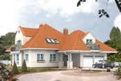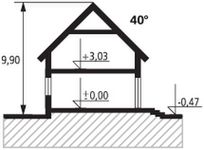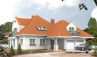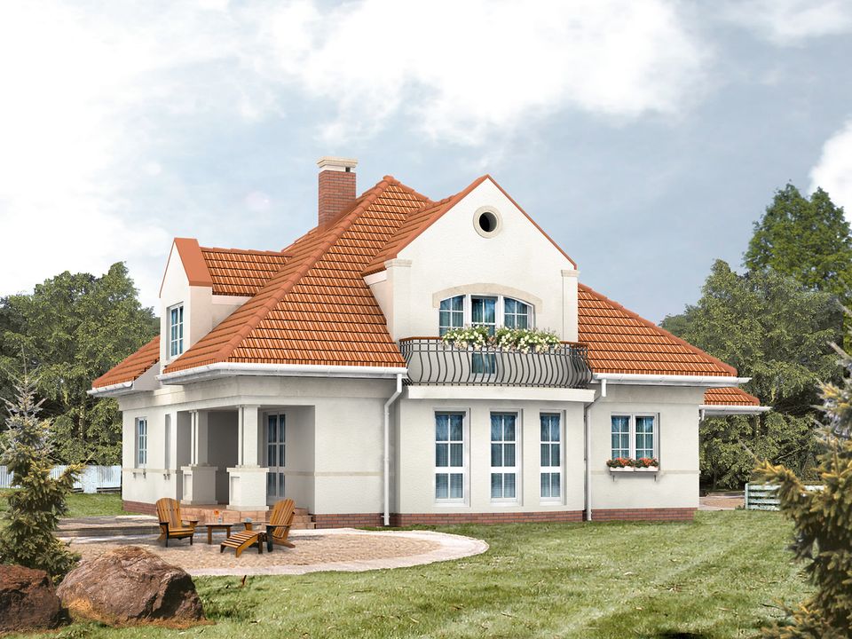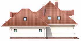 Dach: dachówka, kąt nachylenia 40°. Stropy: TERIVA. Ściany: 2-warstwowe - POROTHERM 38 cm + styropian. Ogrzewanie: gazowe, elektryczne, olejowe.