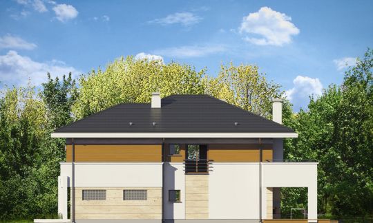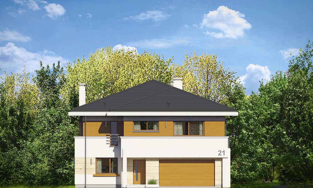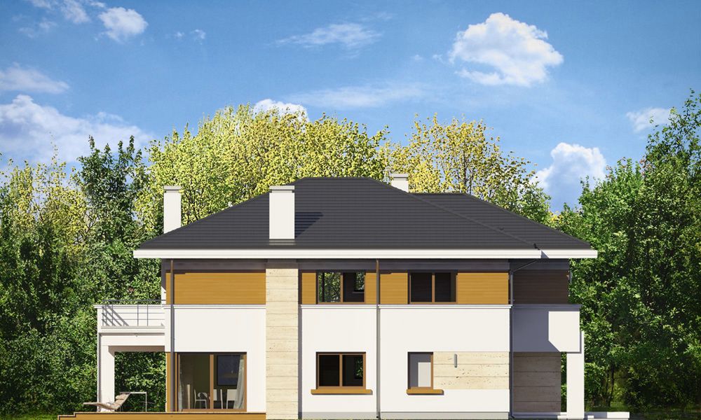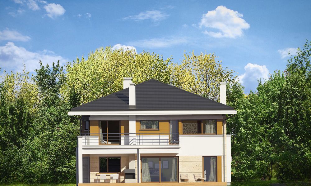 Graficzne opracowanie rzutów poglądowych widocznych na karcie projektu zostało wykonane przez Extradom.pl. Prezentowane przez Extradom.pl wizualizacje wykonane zostały przez autora projektu i należy poczytywać je jedynie za przykład i propozycję wykończenia, wizję architektoniczną autora projektu. Ostateczne wykończenie budynku może nastąpić na wiele sposobów. Szczegółowe rozwiązania zastosowane w oferowanej dokumentacji - w tym również ilość, lokalizacje i wygląd okien, drzwi, kominów - mogą w niewielkim stopniu różnić się od prezentowanej wizualizacji budynku.