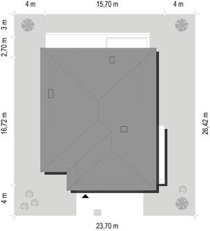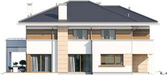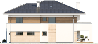 Graficzne opracowanie rzutów poglądowych widocznych na karcie projektu zostało wykonane przez Extradom.pl. Prezentowane przez Extradom.pl wizualizacje wykonane zostały przez autora projektu i należy poczytywać je jedynie za przykład i propozycję wykończenia, wizję architektoniczną autora projektu. Ostateczne wykończenie budynku może nastąpić na wiele sposobów. Szczegółowe rozwiązania zastosowane w oferowanej dokumentacji - w tym również ilość, lokalizacje i wygląd okien, drzwi, kominów - mogą w niewielkim stopniu różnić się od prezentowanej wizualizacji budynku.