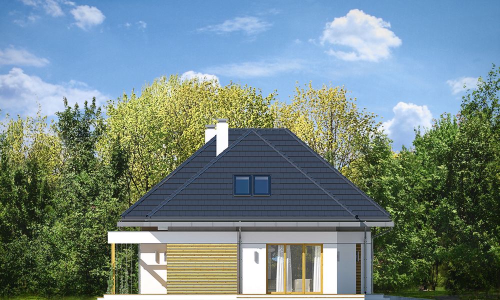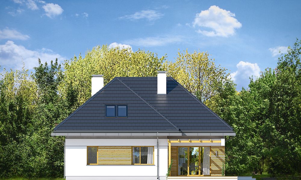 Graficzne opracowanie rzutów poglądowych widocznych na karcie projektu zostało wykonane przez Extradom.pl. Prezentowane przez Extradom.pl wizualizacje wykonane zostały przez autora projektu i należy poczytywać je jedynie za przykład i propozycję wykończenia, wizję architektoniczną autora projektu. Ostateczne wykończenie budynku może nastąpić na wiele sposobów. Szczegółowe rozwiązania zastosowane w oferowanej dokumentacji - w tym również ilość, lokalizacje i wygląd okien, drzwi, kominów - mogą w niewielkim stopniu różnić się od prezentowanej wizualizacji budynku.
