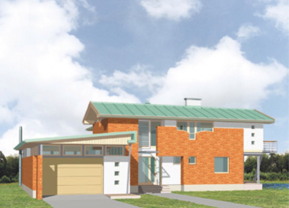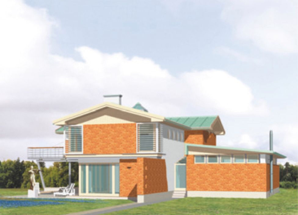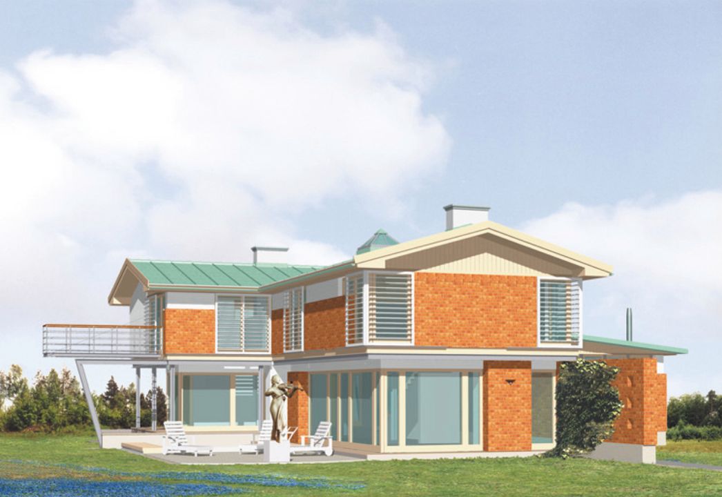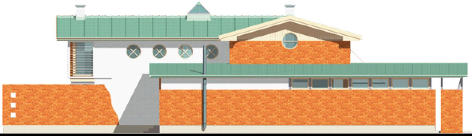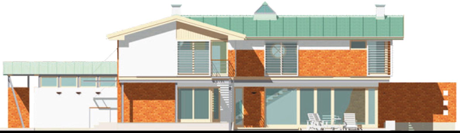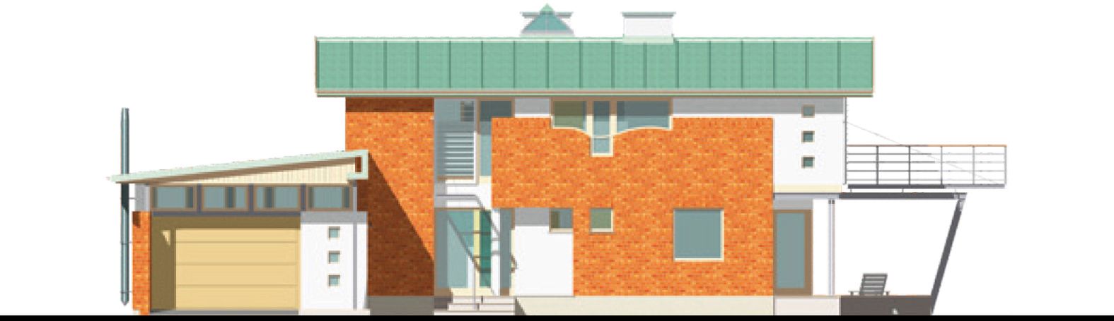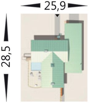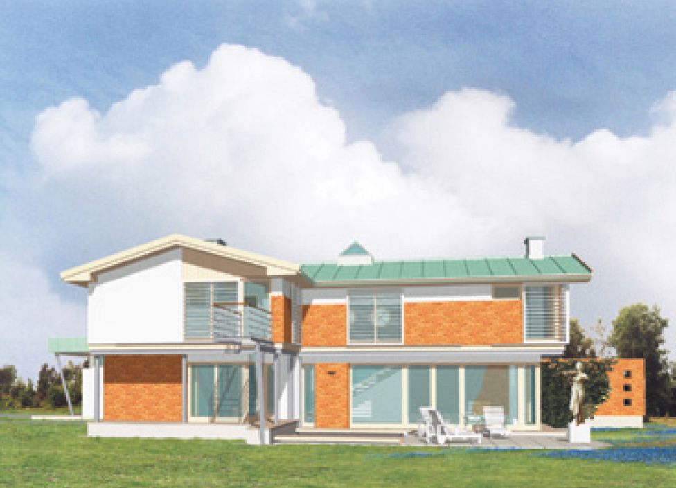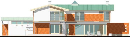 Graficzne opracowanie rzutów poglądowych widocznych na karcie projektu zostało wykonane przez Extradom.pl. Prezentowane przez Extradom.pl wizualizacje wykonane zostały przez autora projektu i należy poczytywać je jedynie za przykład i propozycję wykończenia, wizję architektoniczną autora projektu. Ostateczne wykończenie budynku może nastąpić na wiele sposobów. Szczegółowe rozwiązania zastosowane w oferowanej dokumentacji - w tym również ilość, lokalizacje i wygląd okien, drzwi, kominów - mogą w niewielkim stopniu różnić się od prezentowanej wizualizacji budynku.