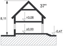 Konstrukcja ściany zewnętrzne - beton komórkowy gr.24 cm + styropian Termo Organika Termonium Plus gr. 12cm; ściany wewnetrzne - beton komórkowy gr.24 cm; ściany fundamentowe - bloczek betonowy; strop - Teriva; konstrukcja dachu - drewniana Instalacje W projekcie przewidziano instalacjie: c.o. i c.w.u. zasilana kotłem na paliwo stałe (biomasa), grzejniki płytowe, instalacje wodno-kanalizacyjna oraz elektryczne, wentylacja grawitacyjna. Wykończenie pokrycie dachowe - dachówka cementowa(w ramach adaptacji inny materiał); ścianki działowe na parterze-bloczki silikatowe; na poddaszu z płyt gipsowo-kartonowych; schody drewniane - zabiegowe, okna - PVC; okna dachowe i wyłaz dachowy - Fakro.