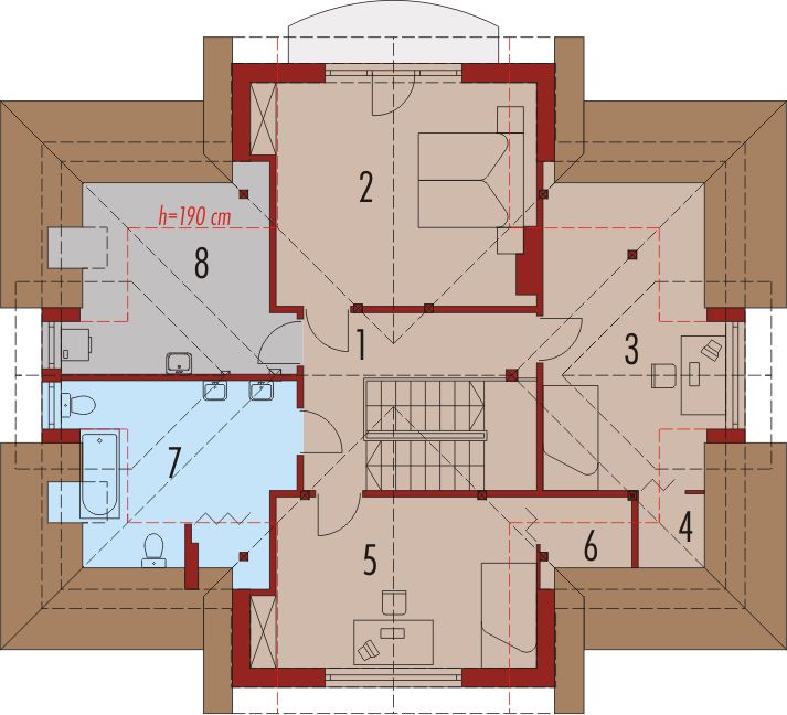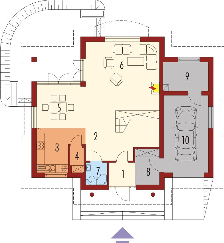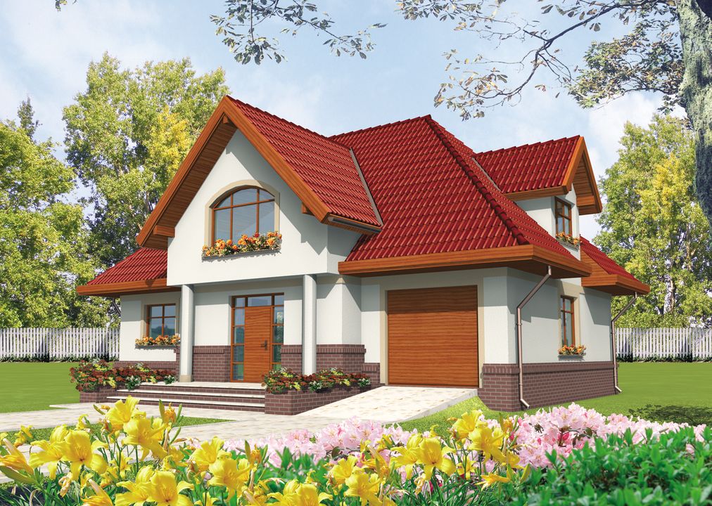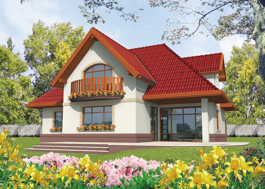 Graficzne opracowanie rzutów poglądowych widocznych na karcie projektu zostało wykonane przez Extradom.pl. Prezentowane przez Extradom.pl wizualizacje wykonane zostały przez autora projektu i należy poczytywać je jedynie za przykład i propozycję wykończenia, wizję architektoniczną autora projektu. Ostateczne wykończenie budynku może nastąpić na wiele sposobów. Szczegółowe rozwiązania zastosowane w oferowanej dokumentacji - w tym również ilość, lokalizacje i wygląd okien, drzwi, kominów - mogą w niewielkim stopniu różnić się od prezentowanej wizualizacji budynku.