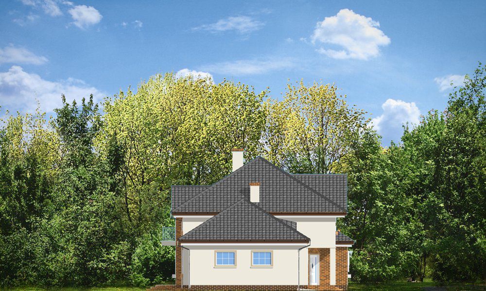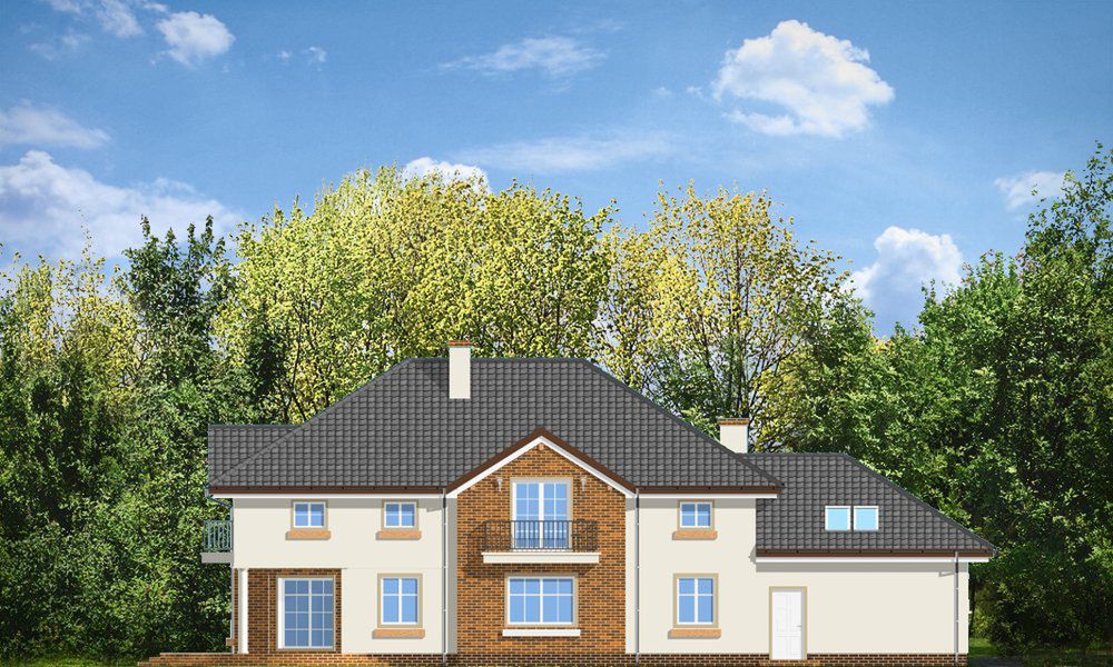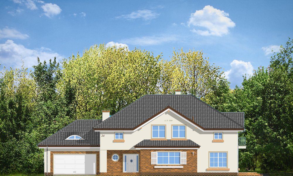 Graficzne opracowanie rzutów poglądowych widocznych na karcie projektu zostało wykonane przez Extradom.pl. Prezentowane przez Extradom.pl wizualizacje wykonane zostały przez autora projektu i należy poczytywać je jedynie za przykład i propozycję wykończenia, wizję architektoniczną autora projektu. Ostateczne wykończenie budynku może nastąpić na wiele sposobów. Szczegółowe rozwiązania zastosowane w oferowanej dokumentacji - w tym również ilość, lokalizacje i wygląd okien, drzwi, kominów - mogą w niewielkim stopniu różnić się od prezentowanej wizualizacji budynku.