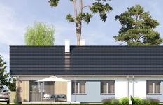 Graficzne opracowanie rzutów poglądowych widocznych na karcie projektu zostało wykonane przez Extradom.pl. Prezentowane przez Extradom.pl wizualizacje wykonane zostały przez autora projektu i należy poczytywać je jedynie za przykład i propozycję wykończenia, wizję architektoniczną autora projektu. Ostateczne wykończenie budynku może nastąpić na wiele sposobów. Szczegółowe rozwiązania zastosowane w oferowanej dokumentacji - w tym również ilość, lokalizacje i wygląd okien, drzwi, kominów - mogą w niewielkim stopniu różnić się od prezentowanej wizualizacji budynku.