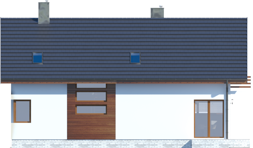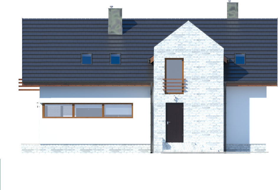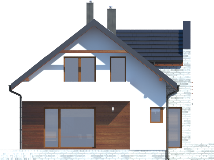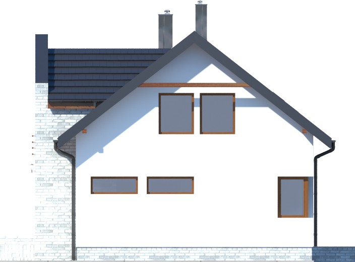 Graficzne opracowanie rzutów poglądowych widocznych na karcie projektu zostało wykonane przez Extradom.pl. Prezentowane przez Extradom.pl wizualizacje wykonane zostały przez autora projektu i należy poczytywać je jedynie za przykład i propozycję wykończenia, wizję architektoniczną autora projektu. Ostateczne wykończenie budynku może nastąpić na wiele sposobów. Szczegółowe rozwiązania zastosowane w oferowanej dokumentacji - w tym również ilość, lokalizacje i wygląd okien, drzwi, kominów - mogą w niewielkim stopniu różnić się od prezentowanej wizualizacji budynku.