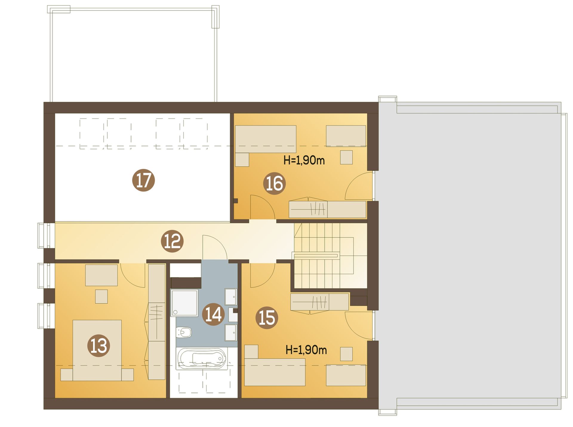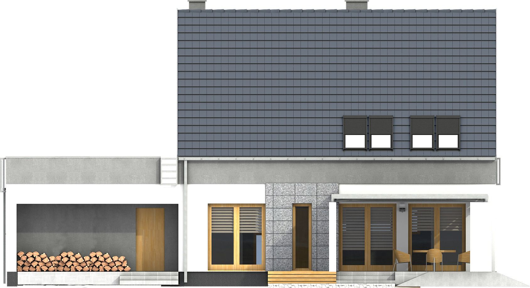 Graficzne opracowanie rzutów poglądowych widocznych na karcie projektu zostało wykonane przez Extradom.pl. Prezentowane przez Extradom.pl wizualizacje wykonane zostały przez autora projektu i należy poczytywać je jedynie za przykład i propozycję wykończenia, wizję architektoniczną autora projektu. Ostateczne wykończenie budynku może nastąpić na wiele sposobów. Szczegółowe rozwiązania zastosowane w oferowanej dokumentacji - w tym również ilość, lokalizacje i wygląd okien, drzwi, kominów - mogą w niewielkim stopniu różnić się od prezentowanej wizualizacji budynku.