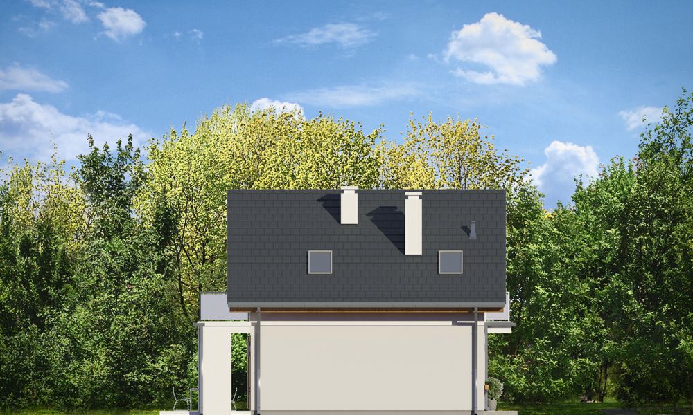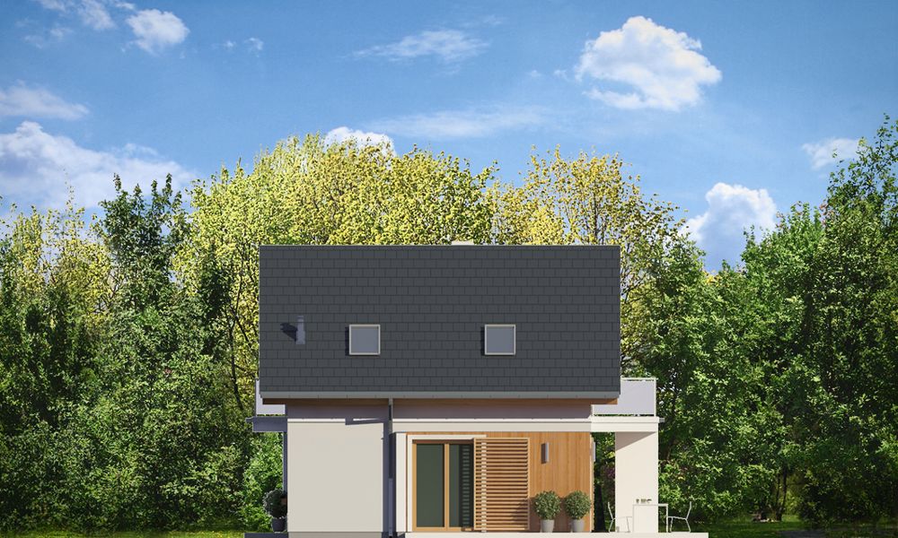 Graficzne opracowanie rzutów poglądowych widocznych na karcie projektu zostało wykonane przez Extradom.pl. Prezentowane przez Extradom.pl wizualizacje wykonane zostały przez autora projektu i należy poczytywać je jedynie za przykład i propozycję wykończenia, wizję architektoniczną autora projektu. Ostateczne wykończenie budynku może nastąpić na wiele sposobów. Szczegółowe rozwiązania zastosowane w oferowanej dokumentacji - w tym również ilość, lokalizacje i wygląd okien, drzwi, kominów - mogą w niewielkim stopniu różnić się od prezentowanej wizualizacji budynku.