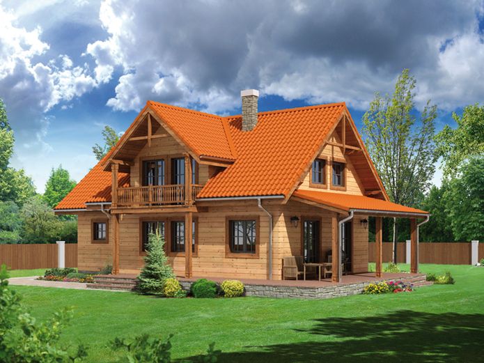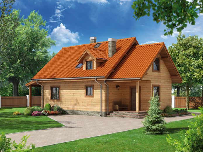 Ściany: płaz drewniany 9/20 +15cm wełna mineralna + deska. Strop: płyta żelbetowa nad piwnicą, drewniany nad parterem. Dach: dachówka lub blacho dachówka.