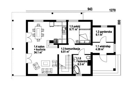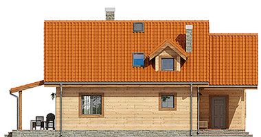 Graficzne opracowanie rzutów poglądowych widocznych na karcie projektu zostało wykonane przez Extradom.pl. Prezentowane przez Extradom.pl wizualizacje wykonane zostały przez autora projektu i należy poczytywać je jedynie za przykład i propozycję wykończenia, wizję architektoniczną autora projektu. Ostateczne wykończenie budynku może nastąpić na wiele sposobów. Szczegółowe rozwiązania zastosowane w oferowanej dokumentacji - w tym również ilość, lokalizacje i wygląd okien, drzwi, kominów - mogą w niewielkim stopniu różnić się od prezentowanej wizualizacji budynku.