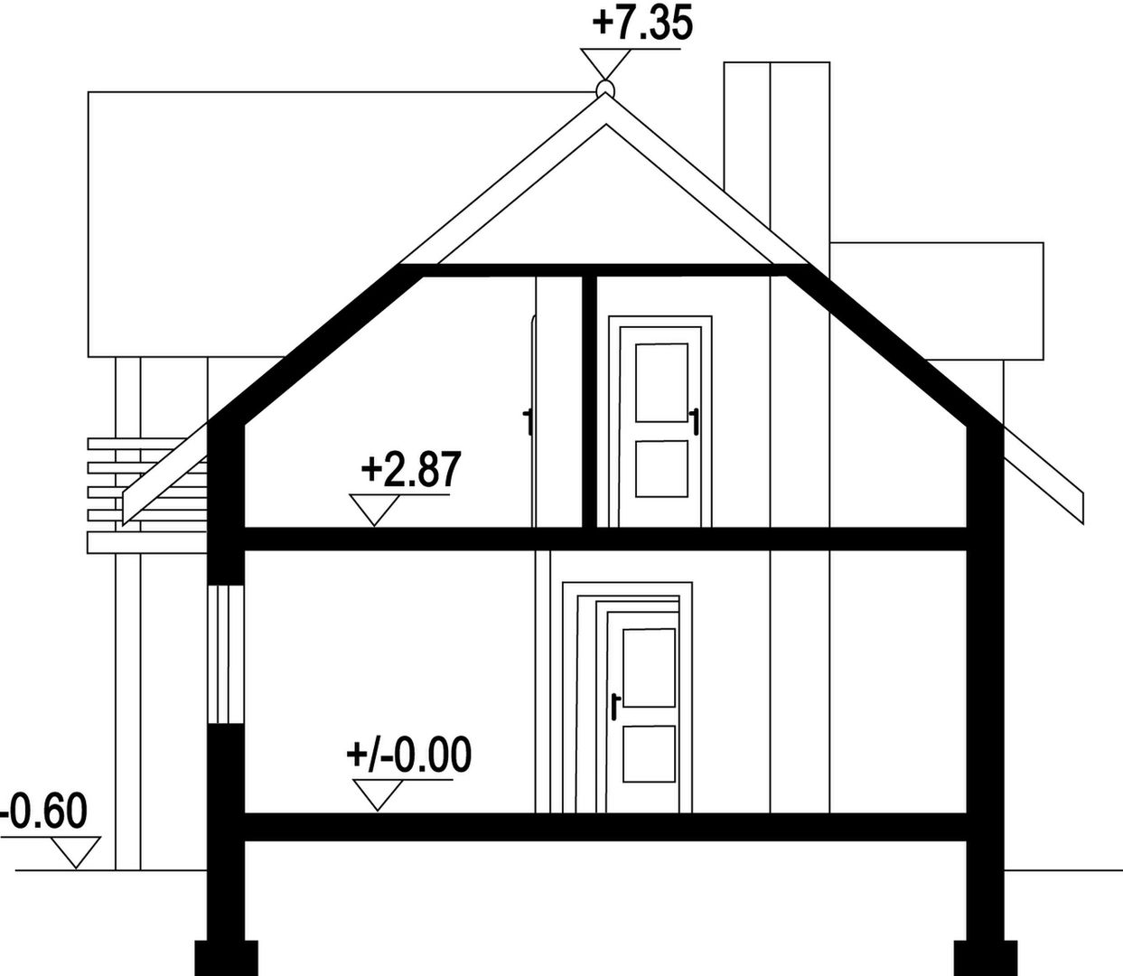 Wysokość ścianki kolankowej: 0.73 m. Ilość drewna na więźbę: 8.28 m³. Strop: płyta żelbetowa. Pokrycie dachu: dachówka ceramiczna. Ściany zewnętrzne: bloczki z betonu komórkowego H+H. Ściany wewnętrzne: bloczki z betonu komórkowego H+H. Typ ogrzewania: kocioł gazowy.
