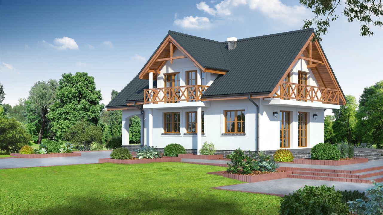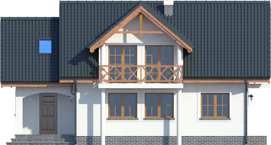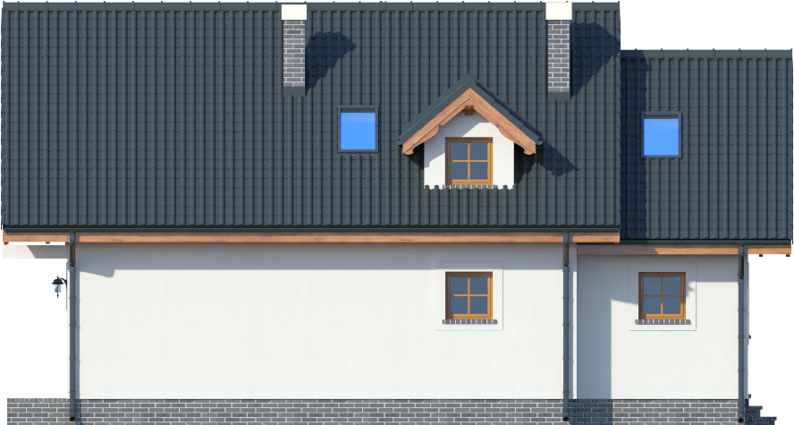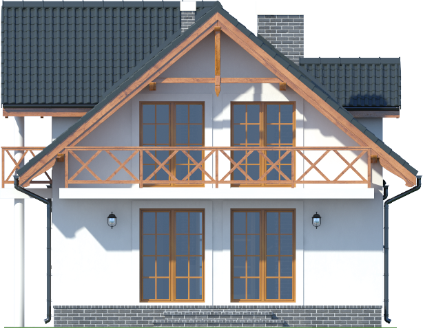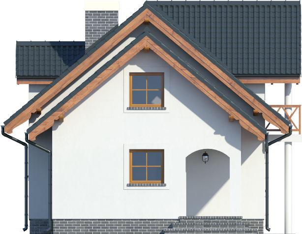 Graficzne opracowanie rzutów poglądowych widocznych na karcie projektu zostało wykonane przez Extradom.pl. Prezentowane przez Extradom.pl wizualizacje wykonane zostały przez autora projektu i należy poczytywać je jedynie za przykład i propozycję wykończenia, wizję architektoniczną autora projektu. Ostateczne wykończenie budynku może nastąpić na wiele sposobów. Szczegółowe rozwiązania zastosowane w oferowanej dokumentacji - w tym również ilość, lokalizacje i wygląd okien, drzwi, kominów - mogą w niewielkim stopniu różnić się od prezentowanej wizualizacji budynku.