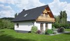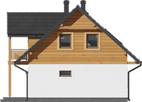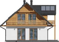 Graficzne opracowanie rzutów poglądowych widocznych na karcie projektu zostało wykonane przez Extradom.pl. Prezentowane przez Extradom.pl wizualizacje wykonane zostały przez autora projektu i należy poczytywać je jedynie za przykład i propozycję wykończenia, wizję architektoniczną autora projektu. Ostateczne wykończenie budynku może nastąpić na wiele sposobów. Szczegółowe rozwiązania zastosowane w oferowanej dokumentacji - w tym również ilość, lokalizacje i wygląd okien, drzwi, kominów - mogą w niewielkim stopniu różnić się od prezentowanej wizualizacji budynku.