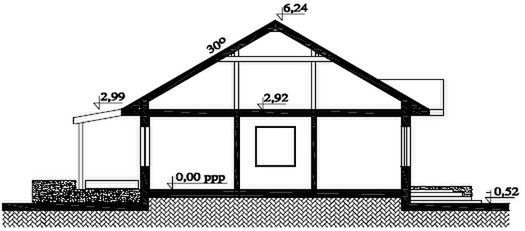 Technologia wykonania: Budynek zaprojektowano w konstrukcji drewnianej szkieletowej tzw kanadyjczyk. Ściany zewnętrzne drewniane, słupki o przekroju 4 x 24 cm z ociepleniem wełną mineralną lub styropianem. Ściany wewnętrzne drewniane słupki o przekroju 4 x 14 cm z ociepleniem wełną mineralną lub styropianem. Strop i więźba dachowa drewniana o przekroju 6 x 18 cm wykonana – montowana w szablonie. Ściany na zewnątrz szalówka drewniana, panele blaszane lub tynk akrylowy na styropianie. Dodatkowe ocieplenie ścian zewnętrznych nie jest wymagane. Ściany wewnętrzne płyta gipsowo kartonowa na łatach.