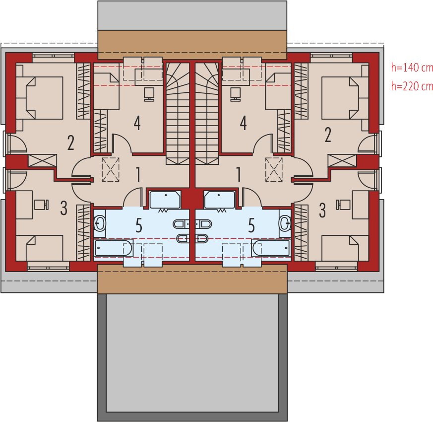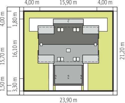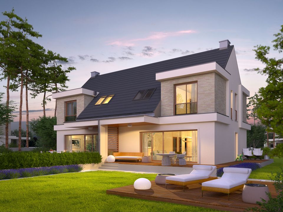 Graficzne opracowanie rzutów poglądowych widocznych na karcie projektu zostało wykonane przez Extradom.pl. Prezentowane przez Extradom.pl wizualizacje wykonane zostały przez autora projektu i należy poczytywać je jedynie za przykład i propozycję wykończenia, wizję architektoniczną autora projektu. Ostateczne wykończenie budynku może nastąpić na wiele sposobów. Szczegółowe rozwiązania zastosowane w oferowanej dokumentacji - w tym również ilość, lokalizacje i wygląd okien, drzwi, kominów - mogą w niewielkim stopniu różnić się od prezentowanej wizualizacji budynku.
