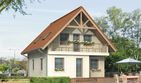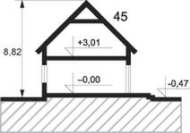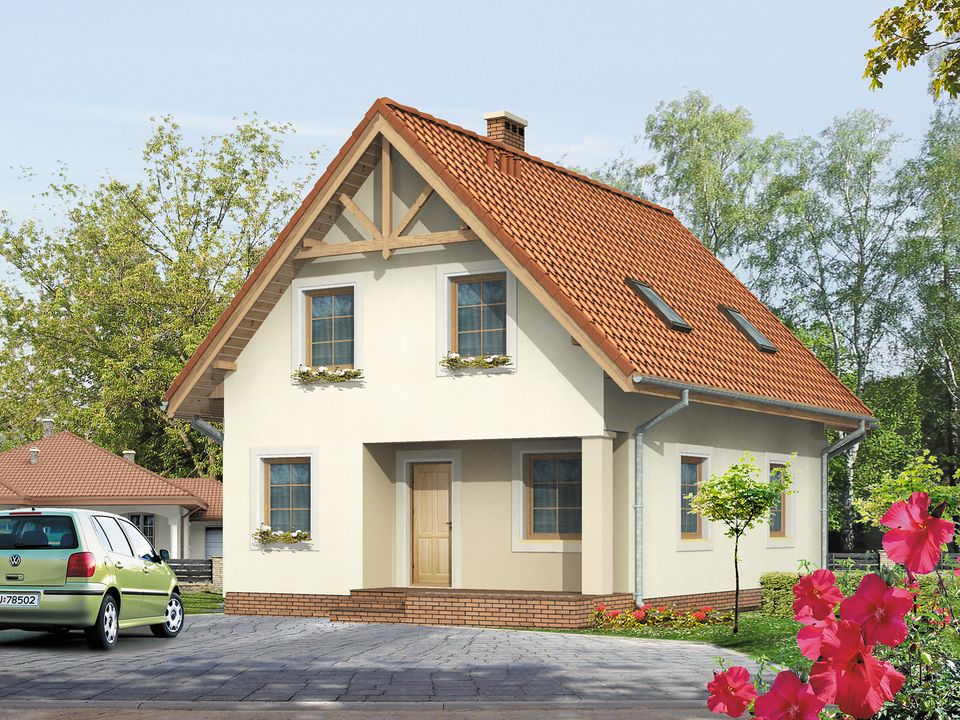 Ściany: 2-warstwowe - pustak ceramiczny + styropian. Stropy: żelbetowe, wylewane. Dach: blachodachówka, kąt nachylenia 45°. Ogrzewanie: na paliwo stałe.