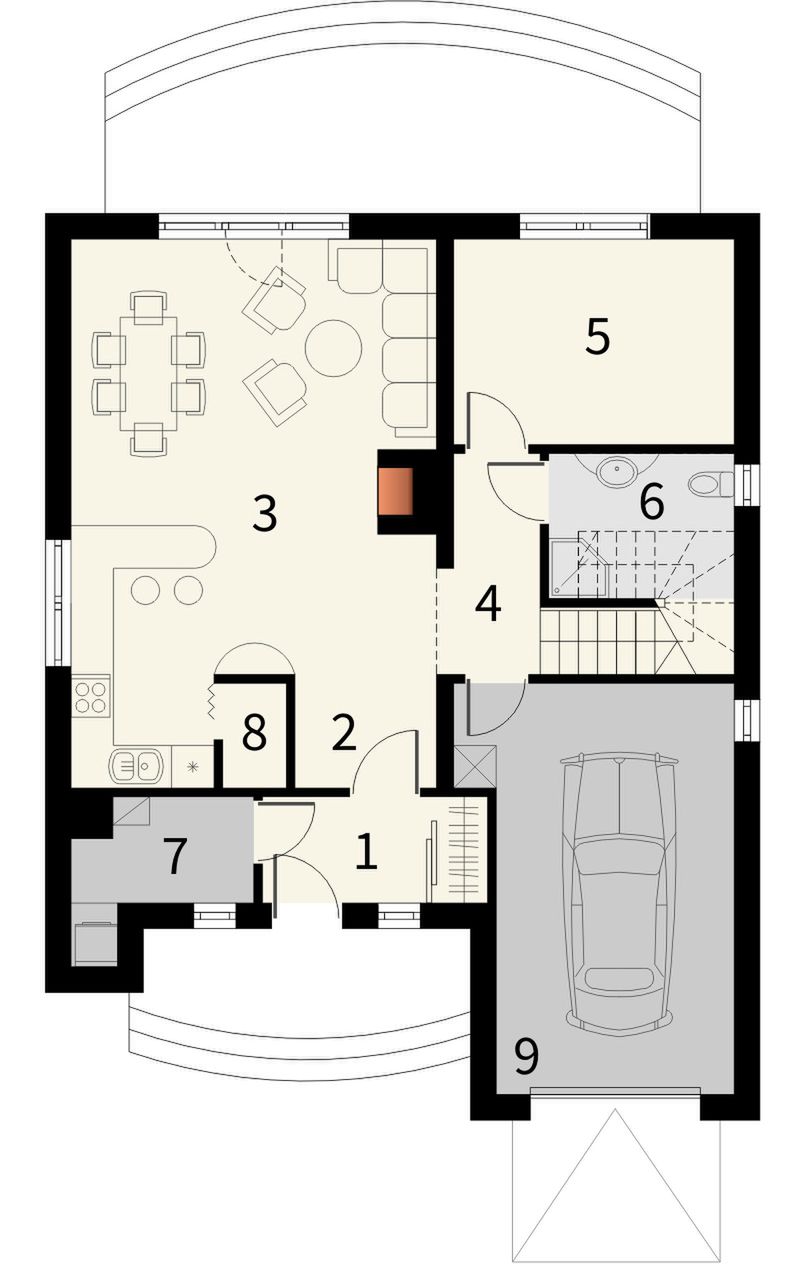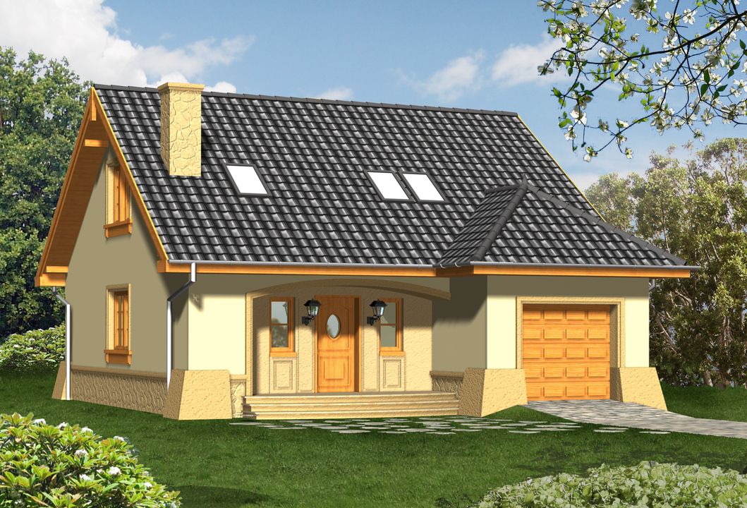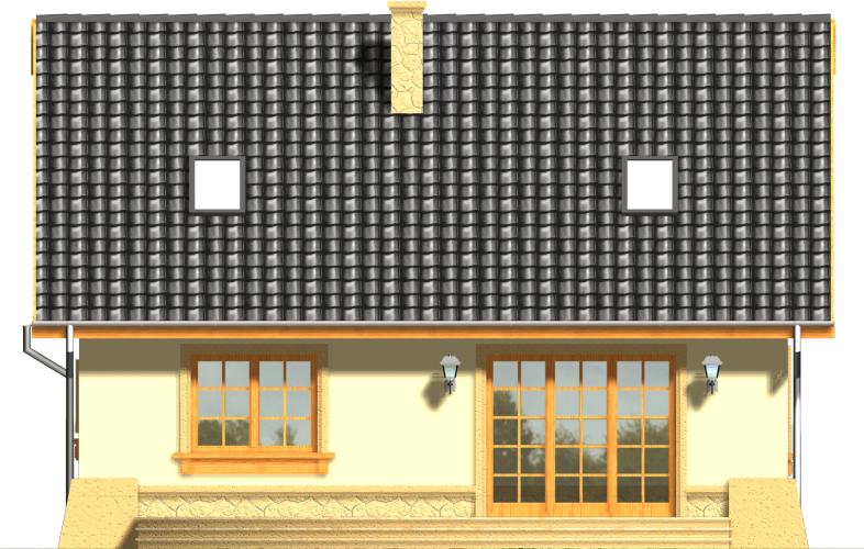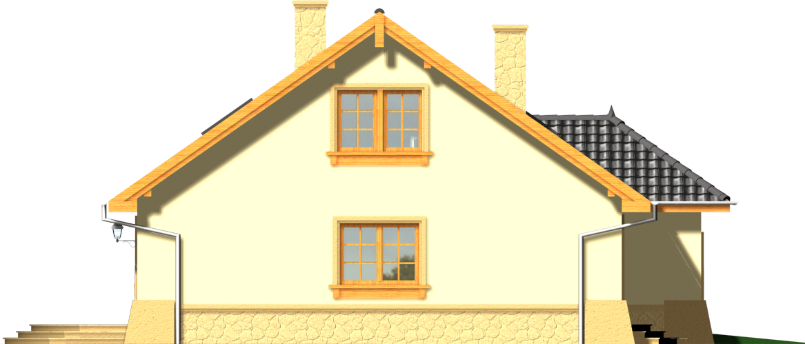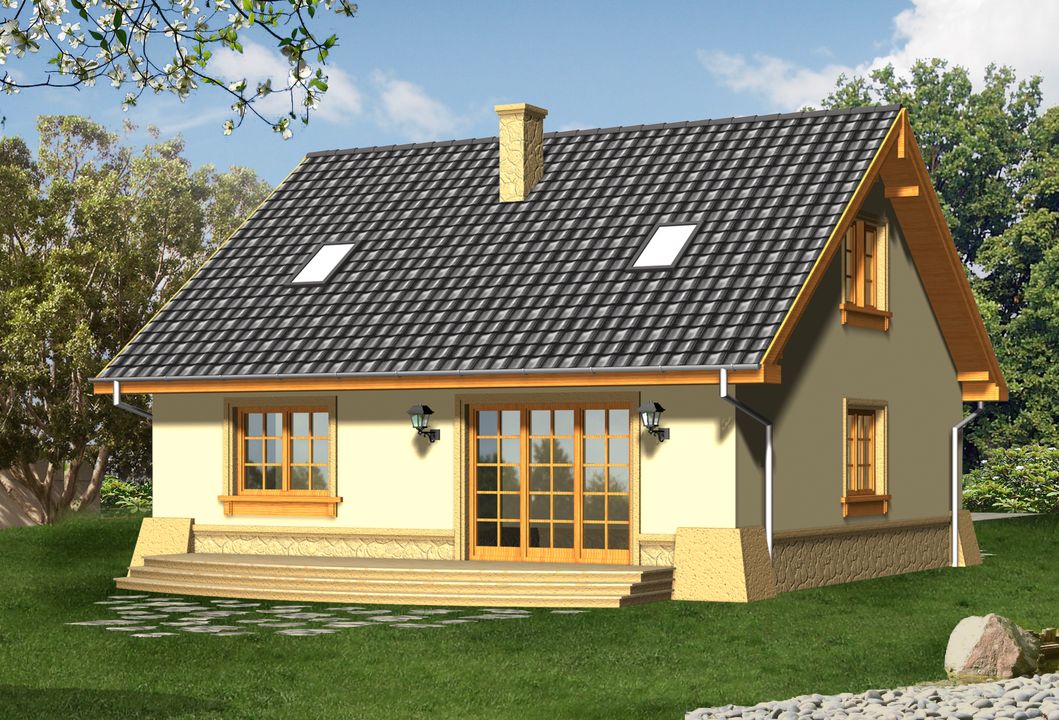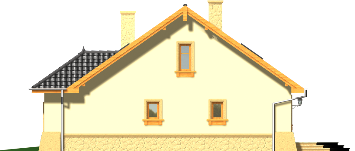 Graficzne opracowanie rzutów poglądowych widocznych na karcie projektu zostało wykonane przez Extradom.pl. Prezentowane przez Extradom.pl wizualizacje wykonane zostały przez autora projektu i należy poczytywać je jedynie za przykład i propozycję wykończenia, wizję architektoniczną autora projektu. Ostateczne wykończenie budynku może nastąpić na wiele sposobów. Szczegółowe rozwiązania zastosowane w oferowanej dokumentacji - w tym również ilość, lokalizacje i wygląd okien, drzwi, kominów - mogą w niewielkim stopniu różnić się od prezentowanej wizualizacji budynku.