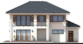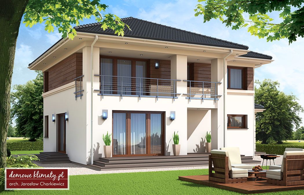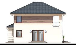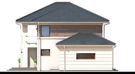 Graficzne opracowanie rzutów poglądowych widocznych na karcie projektu zostało wykonane przez Extradom.pl. Prezentowane przez Extradom.pl wizualizacje wykonane zostały przez autora projektu i należy poczytywać je jedynie za przykład i propozycję wykończenia, wizję architektoniczną autora projektu. Ostateczne wykończenie budynku może nastąpić na wiele sposobów. Szczegółowe rozwiązania zastosowane w oferowanej dokumentacji - w tym również ilość, lokalizacje i wygląd okien, drzwi, kominów - mogą w niewielkim stopniu różnić się od prezentowanej wizualizacji budynku.