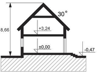 Ściany: 2-warstwowe - pustak ceramiczny + styropian. Stropy: żelbetowe, wylewane. Dach: blacha na rąbek stojący Ruukki Classic, kąt nachylenia 30°. Ogrzewanie: gazowe.