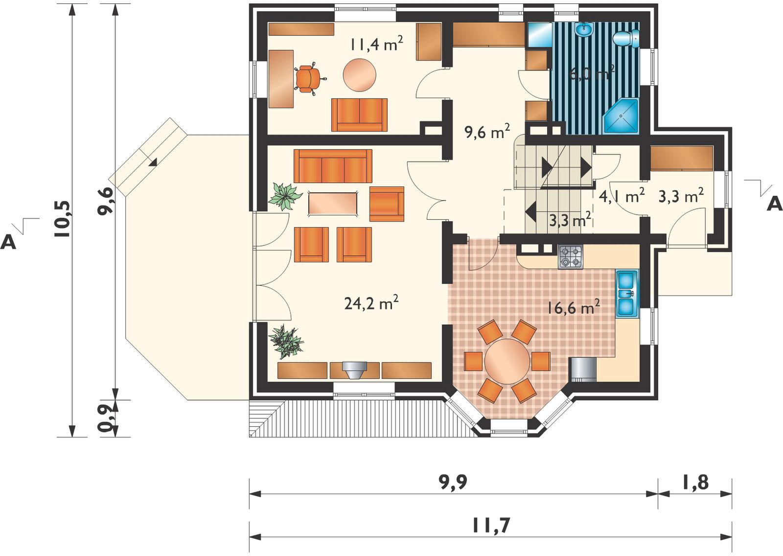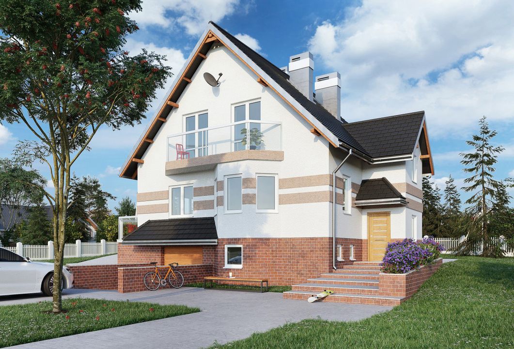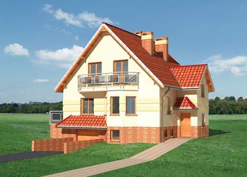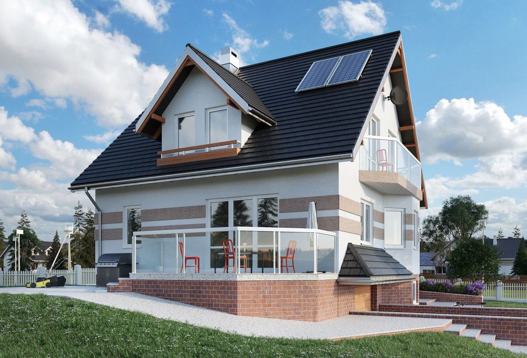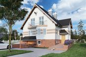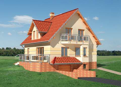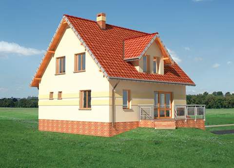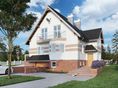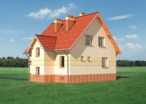 Graficzne opracowanie rzutów poglądowych widocznych na karcie projektu zostało wykonane przez Extradom.pl. Prezentowane przez Extradom.pl wizualizacje wykonane zostały przez autora projektu i należy poczytywać je jedynie za przykład i propozycję wykończenia, wizję architektoniczną autora projektu. Ostateczne wykończenie budynku może nastąpić na wiele sposobów. Szczegółowe rozwiązania zastosowane w oferowanej dokumentacji - w tym również ilość, lokalizacje i wygląd okien, drzwi, kominów - mogą w niewielkim stopniu różnić się od prezentowanej wizualizacji budynku.