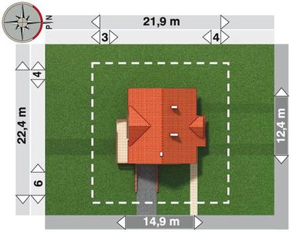 Graficzne opracowanie rzutów poglądowych widocznych na karcie projektu zostało wykonane przez Extradom.pl. Prezentowane przez Extradom.pl wizualizacje wykonane zostały przez autora projektu i należy poczytywać je jedynie za przykład i propozycję wykończenia, wizję architektoniczną autora projektu. Ostateczne wykończenie budynku może nastąpić na wiele sposobów. Szczegółowe rozwiązania zastosowane w oferowanej dokumentacji - w tym również ilość, lokalizacje i wygląd okien, drzwi, kominów - mogą w niewielkim stopniu różnić się od prezentowanej wizualizacji budynku.