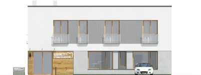 Graficzne opracowanie rzutów poglądowych widocznych na karcie projektu zostało wykonane przez Extradom.pl. Prezentowane przez Extradom.pl wizualizacje wykonane zostały przez autora projektu i należy poczytywać je jedynie za przykład i propozycję wykończenia, wizję architektoniczną autora projektu. Ostateczne wykończenie budynku może nastąpić na wiele sposobów. Szczegółowe rozwiązania zastosowane w oferowanej dokumentacji - w tym również ilość, lokalizacje i wygląd okien, drzwi, kominów - mogą w niewielkim stopniu różnić się od prezentowanej wizualizacji budynku.