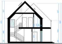 Fundamenty: ławy żelbetowe. Ściany konstrukcja: pustak ceramiczny Porotherm. Ściany elewacja: tynk + blacha stalowa cynkowana powlekana na rąbek stojący. Stropy: żelbetowe monolityczne. Dach konstrukcja: więźba drewniana płatwiowo-kleszczowa. Dach pokrycie: blacha stalowa cynkowana powlekana na rąbek stojący. Schody: żelbetowe. Ogrzewanie kocioł: kocioł gazowy dwufunkcyjny. Ogrzewanie grzejniki: grzejniki ścienne + ogrzewanie podłogowe.