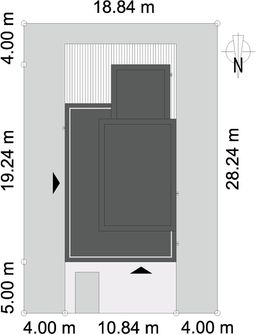 Graficzne opracowanie rzutów poglądowych widocznych na karcie projektu zostało wykonane przez Extradom.pl. Prezentowane przez Extradom.pl wizualizacje wykonane zostały przez autora projektu i należy poczytywać je jedynie za przykład i propozycję wykończenia, wizję architektoniczną autora projektu. Ostateczne wykończenie budynku może nastąpić na wiele sposobów. Szczegółowe rozwiązania zastosowane w oferowanej dokumentacji - w tym również ilość, lokalizacje i wygląd okien, drzwi, kominów - mogą w niewielkim stopniu różnić się od prezentowanej wizualizacji budynku.