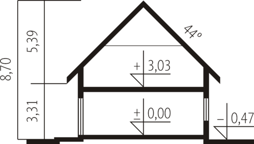 Ściany zewnętrzne: murowane. Strop: gęstożebrowy. Dach: konstrukcja drewniana, dachówka cementowa lub ceramiczna. Inne: schody wewnętrzne drewniane. Ogrzewanie: kocioł gazowy, rozprowadzenie ciepła: grzejniki. Wentylacja: grawitacyjna. Elewacje: tynk strukturalny. Stolarka: drewniana lub PCV.