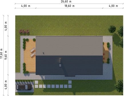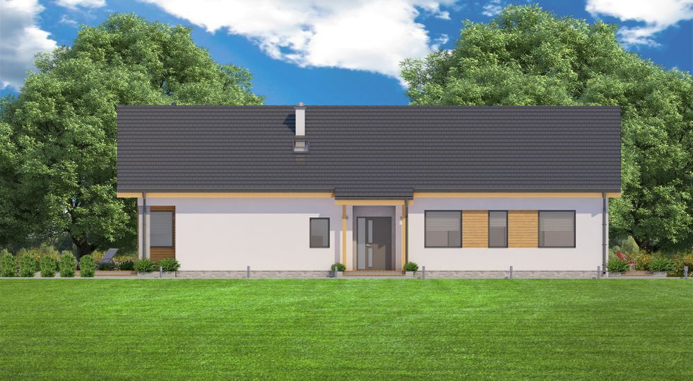 Graficzne opracowanie rzutów poglądowych widocznych na karcie projektu zostało wykonane przez Extradom.pl. Prezentowane przez Extradom.pl wizualizacje wykonane zostały przez autora projektu i należy poczytywać je jedynie za przykład i propozycję wykończenia, wizję architektoniczną autora projektu. Ostateczne wykończenie budynku może nastąpić na wiele sposobów. Szczegółowe rozwiązania zastosowane w oferowanej dokumentacji - w tym również ilość, lokalizacje i wygląd okien, drzwi, kominów - mogą w niewielkim stopniu różnić się od prezentowanej wizualizacji budynku.