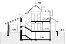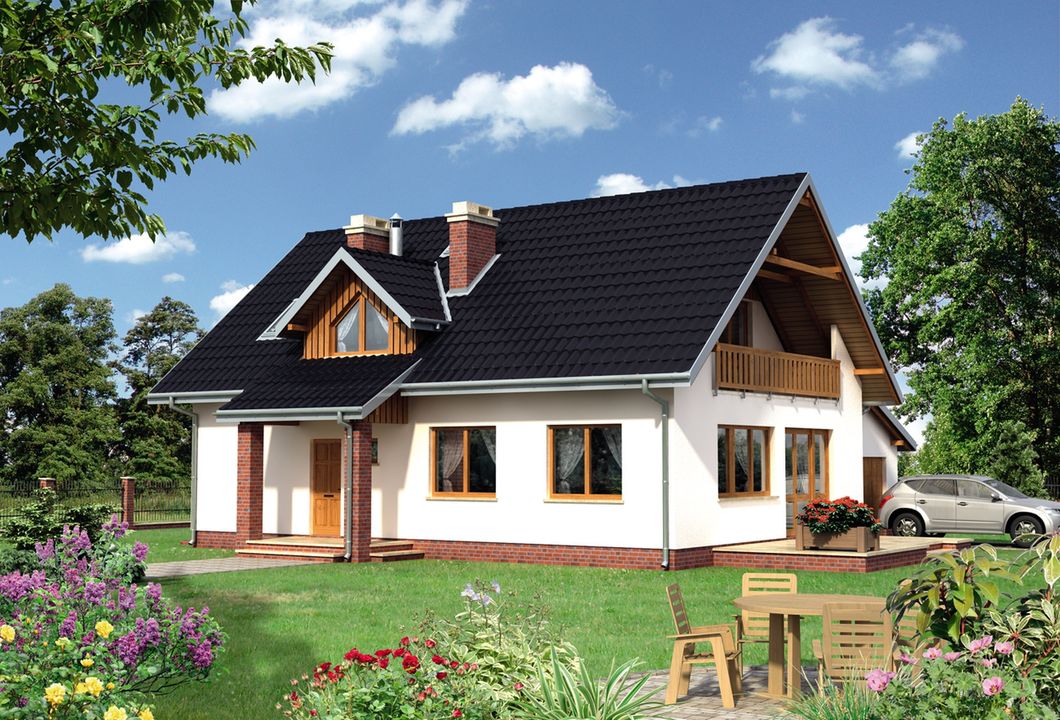 Graficzne opracowanie rzutów poglądowych widocznych na karcie projektu zostało wykonane przez Extradom.pl. Prezentowane przez Extradom.pl wizualizacje wykonane zostały przez autora projektu i należy poczytywać je jedynie za przykład i propozycję wykończenia, wizję architektoniczną autora projektu. Ostateczne wykończenie budynku może nastąpić na wiele sposobów. Szczegółowe rozwiązania zastosowane w oferowanej dokumentacji - w tym również ilość, lokalizacje i wygląd okien, drzwi, kominów - mogą w niewielkim stopniu różnić się od prezentowanej wizualizacji budynku.