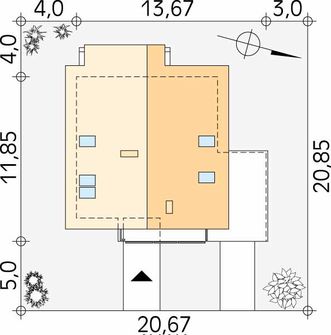 Graficzne opracowanie rzutów poglądowych widocznych na karcie projektu zostało wykonane przez Extradom.pl. Prezentowane przez Extradom.pl wizualizacje wykonane zostały przez autora projektu i należy poczytywać je jedynie za przykład i propozycję wykończenia, wizję architektoniczną autora projektu. Ostateczne wykończenie budynku może nastąpić na wiele sposobów. Szczegółowe rozwiązania zastosowane w oferowanej dokumentacji - w tym również ilość, lokalizacje i wygląd okien, drzwi, kominów - mogą w niewielkim stopniu różnić się od prezentowanej wizualizacji budynku.