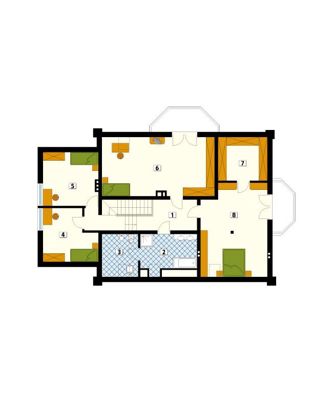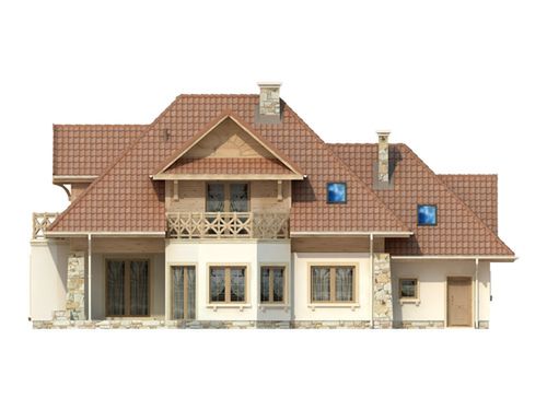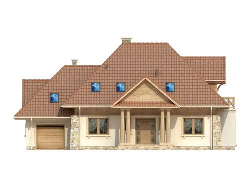 Graficzne opracowanie rzutów poglądowych widocznych na karcie projektu zostało wykonane przez Extradom.pl. Prezentowane przez Extradom.pl wizualizacje wykonane zostały przez autora projektu i należy poczytywać je jedynie za przykład i propozycję wykończenia, wizję architektoniczną autora projektu. Ostateczne wykończenie budynku może nastąpić na wiele sposobów. Szczegółowe rozwiązania zastosowane w oferowanej dokumentacji - w tym również ilość, lokalizacje i wygląd okien, drzwi, kominów - mogą w niewielkim stopniu różnić się od prezentowanej wizualizacji budynku.