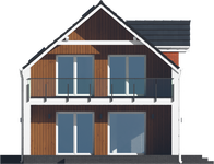 Graficzne opracowanie rzutów poglądowych widocznych na karcie projektu zostało wykonane przez Extradom.pl. Prezentowane przez Extradom.pl wizualizacje wykonane zostały przez autora projektu i należy poczytywać je jedynie za przykład i propozycję wykończenia, wizję architektoniczną autora projektu. Ostateczne wykończenie budynku może nastąpić na wiele sposobów. Szczegółowe rozwiązania zastosowane w oferowanej dokumentacji - w tym również ilość, lokalizacje i wygląd okien, drzwi, kominów - mogą w niewielkim stopniu różnić się od prezentowanej wizualizacji budynku.