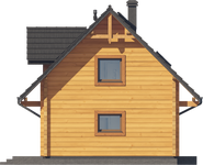 Wysokość ścianki kolankowej: 1.33 m. Strop: drewniany. Pokrycie dachu: dachówka gontopodobna Gerard Corona. Ściany zewnętrzne: płazy drewniane + wełna mineralna + deska. Ściany wewnętrzne: płazy drewniane. Typ ogrzewania: kocioł gazowy lub kocioł na paliwo stałe. Instalacje dodatkowe: instalacja solarna.