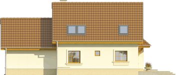 Graficzne opracowanie rzutów poglądowych widocznych na karcie projektu zostało wykonane przez Extradom.pl. Prezentowane przez Extradom.pl wizualizacje wykonane zostały przez autora projektu i należy poczytywać je jedynie za przykład i propozycję wykończenia, wizję architektoniczną autora projektu. Ostateczne wykończenie budynku może nastąpić na wiele sposobów. Szczegółowe rozwiązania zastosowane w oferowanej dokumentacji - w tym również ilość, lokalizacje i wygląd okien, drzwi, kominów - mogą w niewielkim stopniu różnić się od prezentowanej wizualizacji budynku.