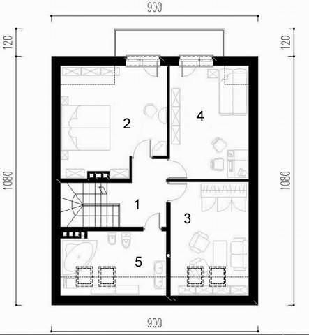 Graficzne opracowanie rzutów poglądowych widocznych na karcie projektu zostało wykonane przez Extradom.pl. Prezentowane przez Extradom.pl wizualizacje wykonane zostały przez autora projektu i należy poczytywać je jedynie za przykład i propozycję wykończenia, wizję architektoniczną autora projektu. Ostateczne wykończenie budynku może nastąpić na wiele sposobów. Szczegółowe rozwiązania zastosowane w oferowanej dokumentacji - w tym również ilość, lokalizacje i wygląd okien, drzwi, kominów - mogą w niewielkim stopniu różnić się od prezentowanej wizualizacji budynku.