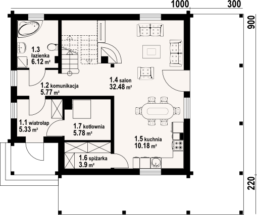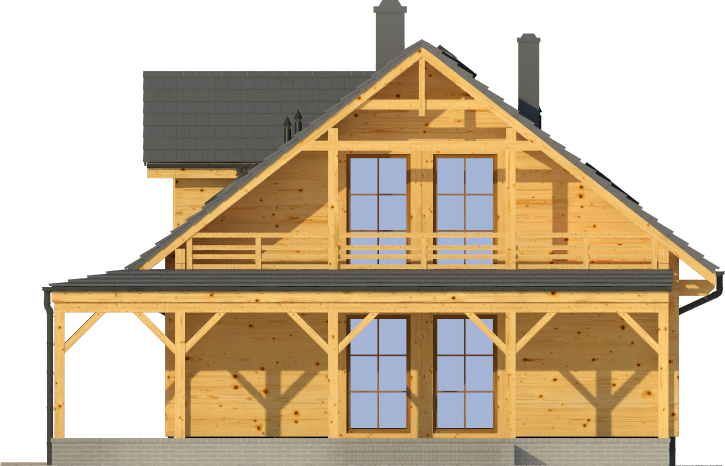 Graficzne opracowanie rzutów poglądowych widocznych na karcie projektu zostało wykonane przez Extradom.pl. Prezentowane przez Extradom.pl wizualizacje wykonane zostały przez autora projektu i należy poczytywać je jedynie za przykład i propozycję wykończenia, wizję architektoniczną autora projektu. Ostateczne wykończenie budynku może nastąpić na wiele sposobów. Szczegółowe rozwiązania zastosowane w oferowanej dokumentacji - w tym również ilość, lokalizacje i wygląd okien, drzwi, kominów - mogą w niewielkim stopniu różnić się od prezentowanej wizualizacji budynku.