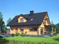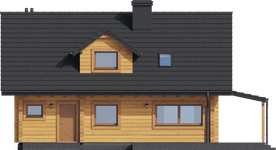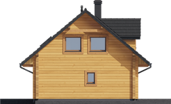 Wysokość ścianki kolankowej: 0.9 m. Strop: drewniany. Pokrycie dachu: dachówka gontopodobna Gerard Corona. Ściany zewnętrzne: płazy drewniane + wełna mineralna + deska. Ściany wewnętrzne: płazy drewniane. Typ ogrzewania: pompa ciepła. Inne: okna połaciowe Velux.
