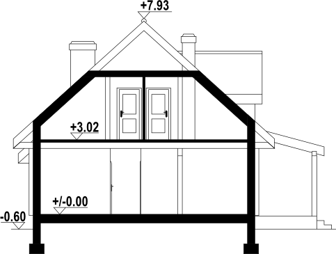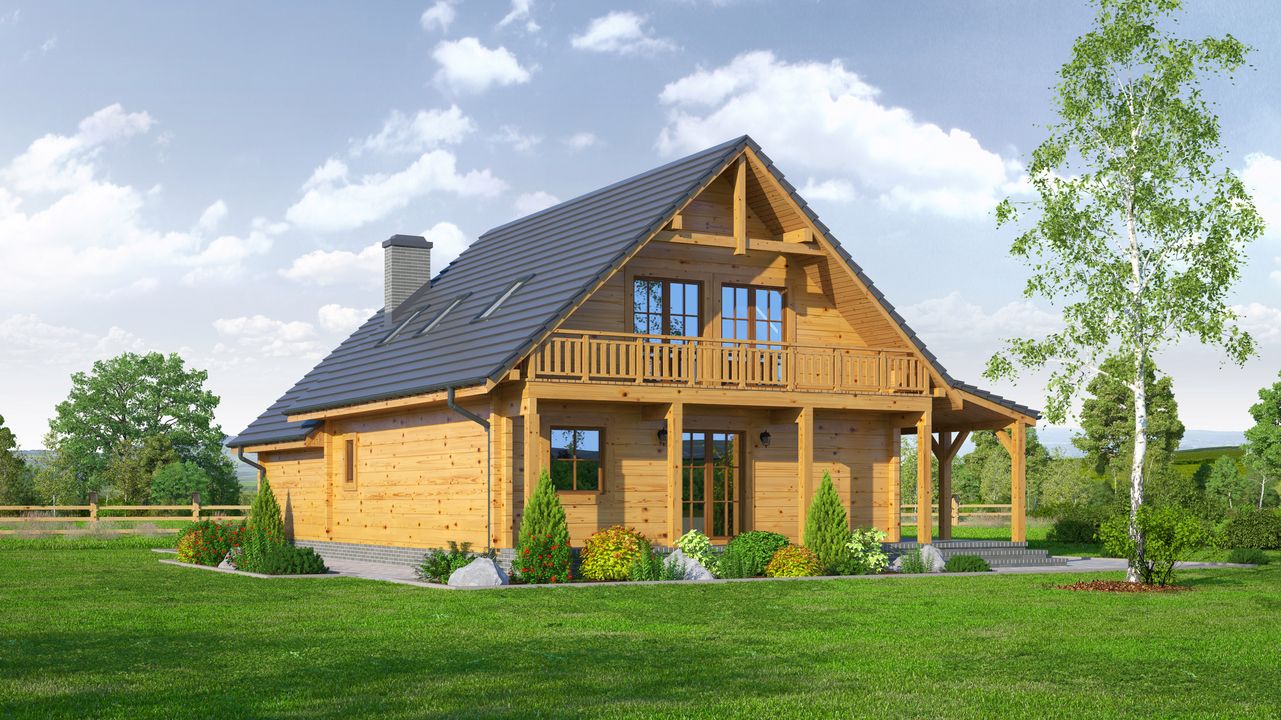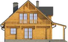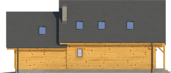 Wysokość ścianki kolankowej: 0.55 m. Ilość drewna na więźbę: 15.42 m³. Strop: drewniany. Pokrycie dachu: dachówka gontopodobna Gerard Corona. Ściany zewnętrzne: płazy drewniane + wełna mineralna + deska. Ściany wewnętrzne: szkieletowe drewniane. Typ ogrzewania: kocioł gazowy lub kocioł na paliwo stałe.
