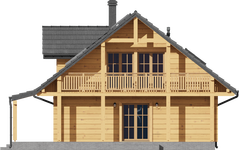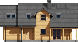 Wysokość ścianki kolankowej: 0.78 m. Ilość drewna na więźbę: 12.41 m³. Strop: drewniany. Pokrycie dachu: dachówka gontopodobna Gerard Corona. Ściany zewnętrzne: płazy drewniane + wełna mineralna + deska. Ściany wewnętrzne: płazy drewniane. Typ ogrzewania: promienniki elektryczne + kominek na biomasę. Instalacje dodatkowe: instalacja solarna. Inne: okna połaciowe Fakro.