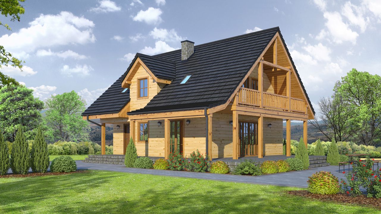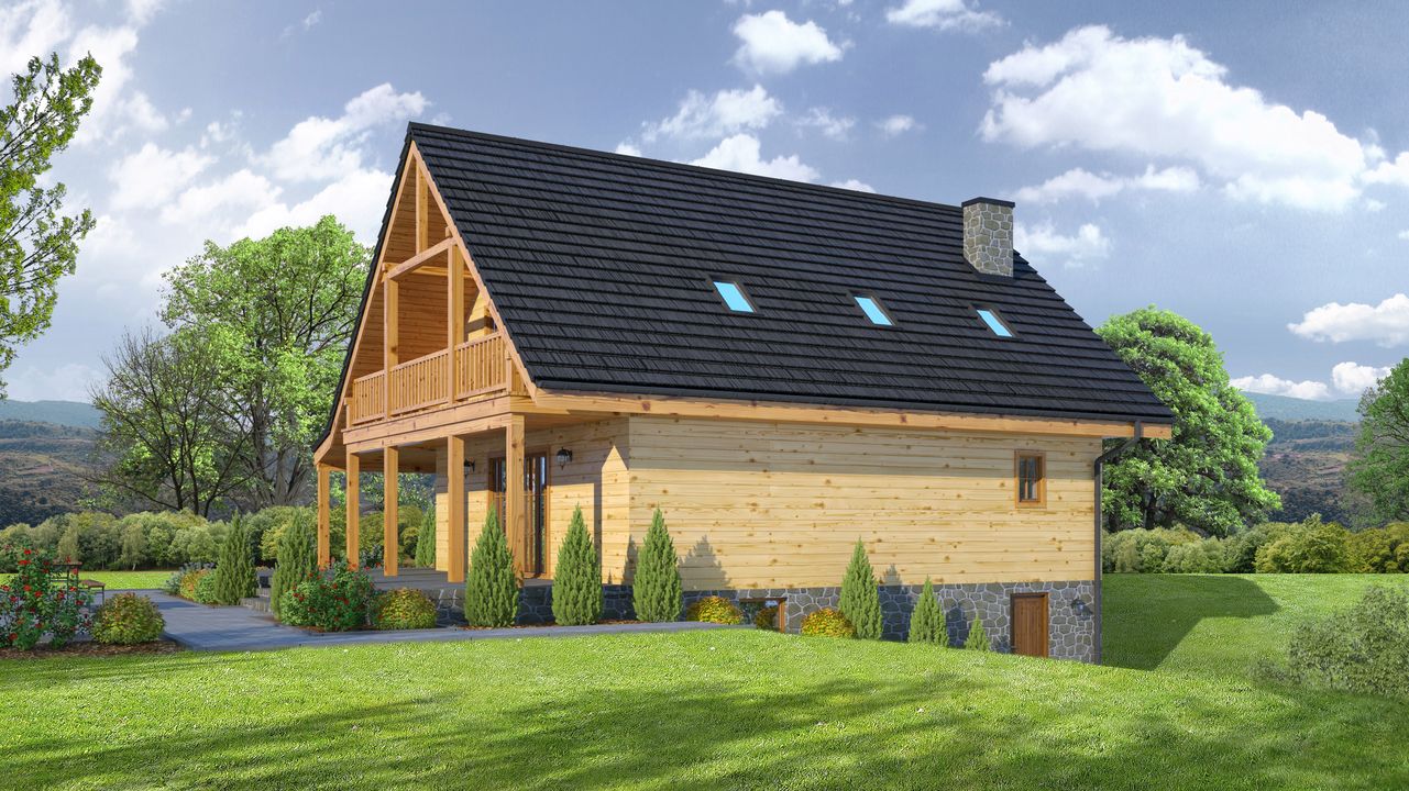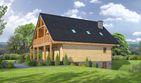 Graficzne opracowanie rzutów poglądowych widocznych na karcie projektu zostało wykonane przez Extradom.pl. Prezentowane przez Extradom.pl wizualizacje wykonane zostały przez autora projektu i należy poczytywać je jedynie za przykład i propozycję wykończenia, wizję architektoniczną autora projektu. Ostateczne wykończenie budynku może nastąpić na wiele sposobów. Szczegółowe rozwiązania zastosowane w oferowanej dokumentacji - w tym również ilość, lokalizacje i wygląd okien, drzwi, kominów - mogą w niewielkim stopniu różnić się od prezentowanej wizualizacji budynku.