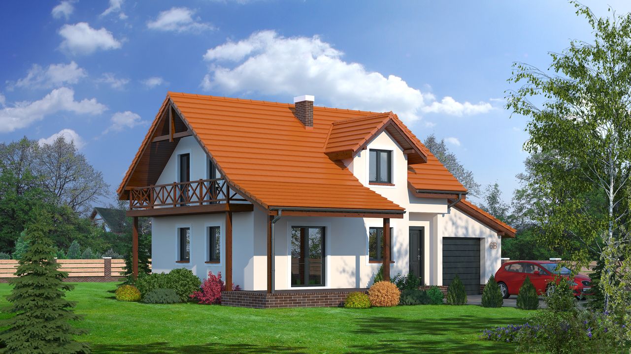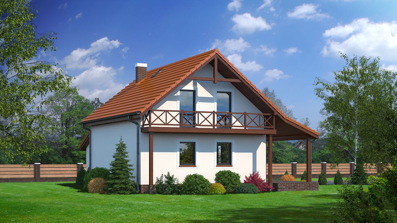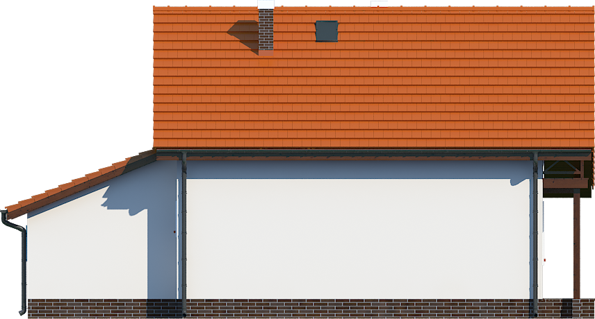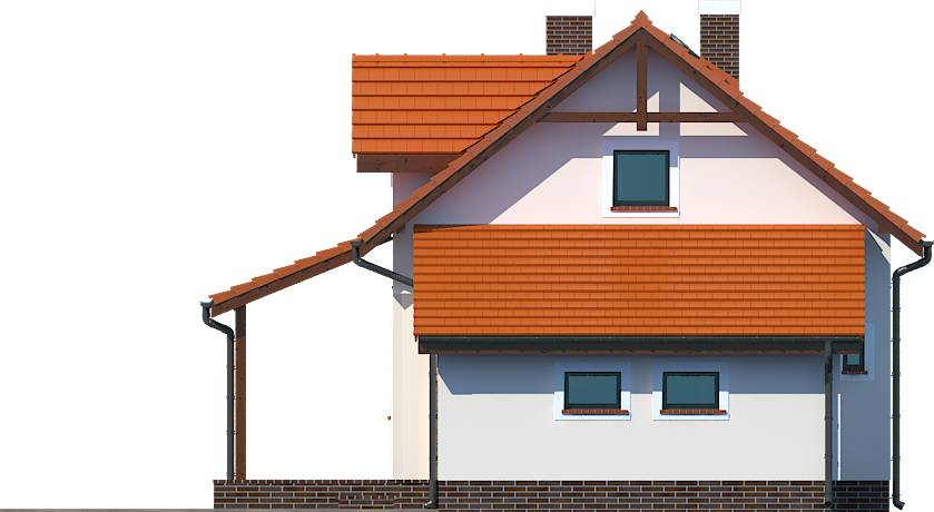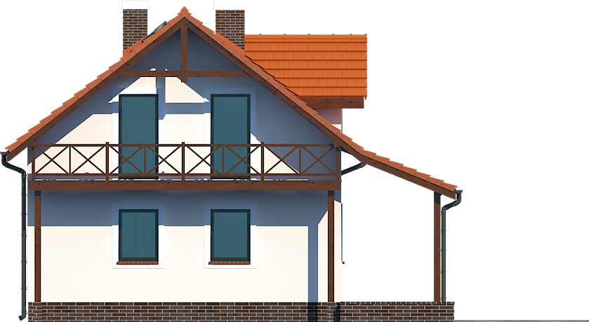 Graficzne opracowanie rzutów poglądowych widocznych na karcie projektu zostało wykonane przez Extradom.pl. Prezentowane przez Extradom.pl wizualizacje wykonane zostały przez autora projektu i należy poczytywać je jedynie za przykład i propozycję wykończenia, wizję architektoniczną autora projektu. Ostateczne wykończenie budynku może nastąpić na wiele sposobów. Szczegółowe rozwiązania zastosowane w oferowanej dokumentacji - w tym również ilość, lokalizacje i wygląd okien, drzwi, kominów - mogą w niewielkim stopniu różnić się od prezentowanej wizualizacji budynku.