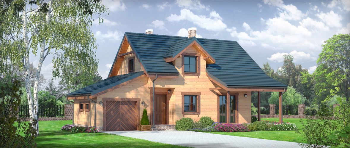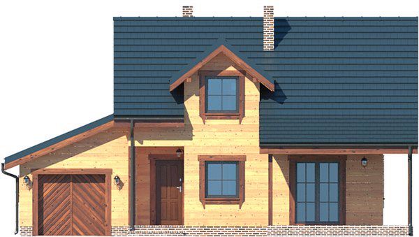 Wysokość ścianki kolankowej: 0.98 m. Ilość drewna na więźbę: 8.27 m³. Strop: drewniany. Pokrycie dachu: dachówka gontopodobna Gerard Corona. Ściany zewnętrzne: szkieletowe drewniane ocieplone wełną mineralną. Ściany wewnętrzne: szkieletowe drewniane. Typ ogrzewania: kocioł gazowy. Instalacje dodatkowe: instalacja solarna. Inne: okna połaciowe Fakro, brama garażowa Hörmann.