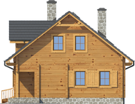 Wysokość ścianki kolankowej: 0.63 m. Strop: drewniany. Pokrycie dachu: dachówka gontopodobna Gerard Corona. Ściany zewnętrzne: płazy drewniane + wełna mineralna + deska. Ściany wewnętrzne: płazy drewniane. Typ ogrzewania: kocioł gazowy. Inne: okna połaciowe Fakro.